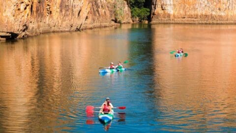 Get up close and personal to the mesmerising Nitmiluk (Katherine) Gorge, by canoeing your way through its many wonders. Go out by yourself or with family and friends and enjoy the tranquillity. You can hire single and twin canoes with Nitmiluk Tours for a full or half day. Explore the first three gorges within a full day, or make the most of the first gorge with a half day canoe hire. Nitmiluk National Park is a world renowned destination for Australian wildlife and Indigenous history.