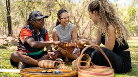 Visit the Aboriginal Lands of the Jawoyn people for a hands on Indigenous learning experience where you will spend the day with the Aboriginal people, sharing their culture, learning their ways and trying some of the skills developed over thousands of years. Activities include basket weaving, spear throwing, fire lighting, painting and learning the didgeridoo. You will also be taken on a short but informative walk learning about bush medicine and ducker. A traditional meal of kangaroo tail will be served at lunch and you will have the opportunity to buy authentic Aboriginal art.